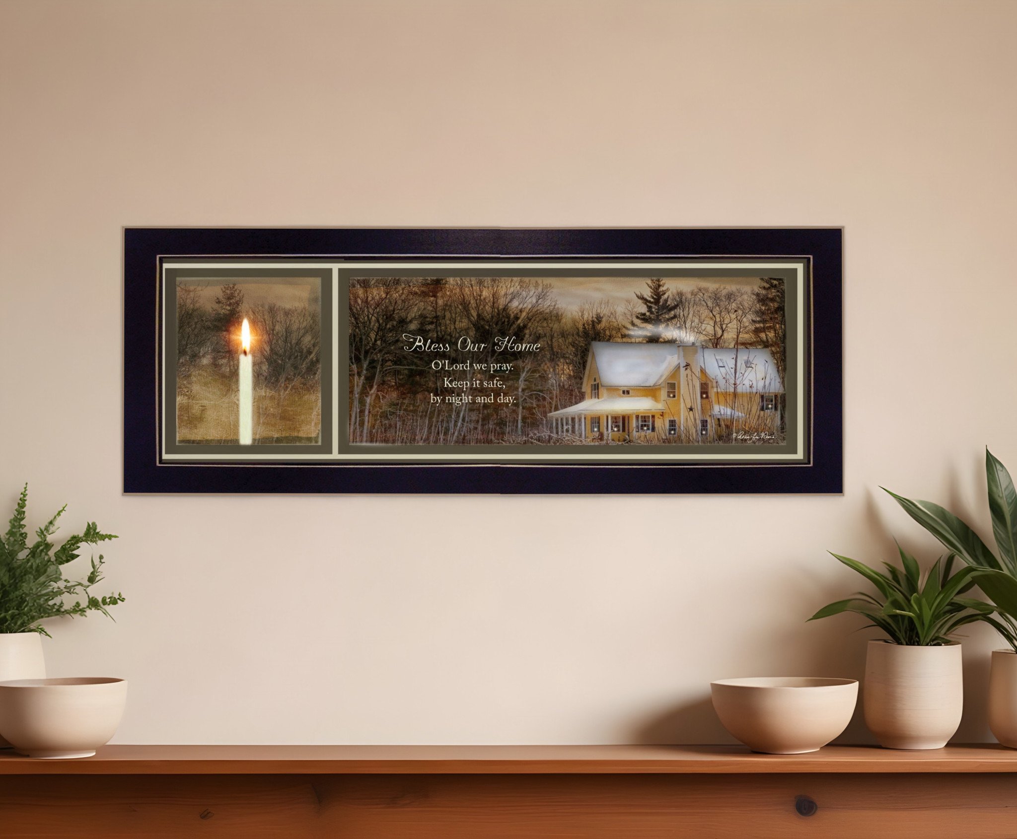 This god bless our home 2 black framed print wall art will add a beautiful decorative accent to your decor. This print is a visual artistic expression that allows you to decorate your space in style. Reproduced for you on paper, this hanging decorative accent will be a trendy and fashionable way to dress your walls. Hang on your wall to add some up to date fashion and decoration. Instantly liven up your space with this art that brings color and dimension to your walls. 20-inch H x 8-inch W x 1-inch D