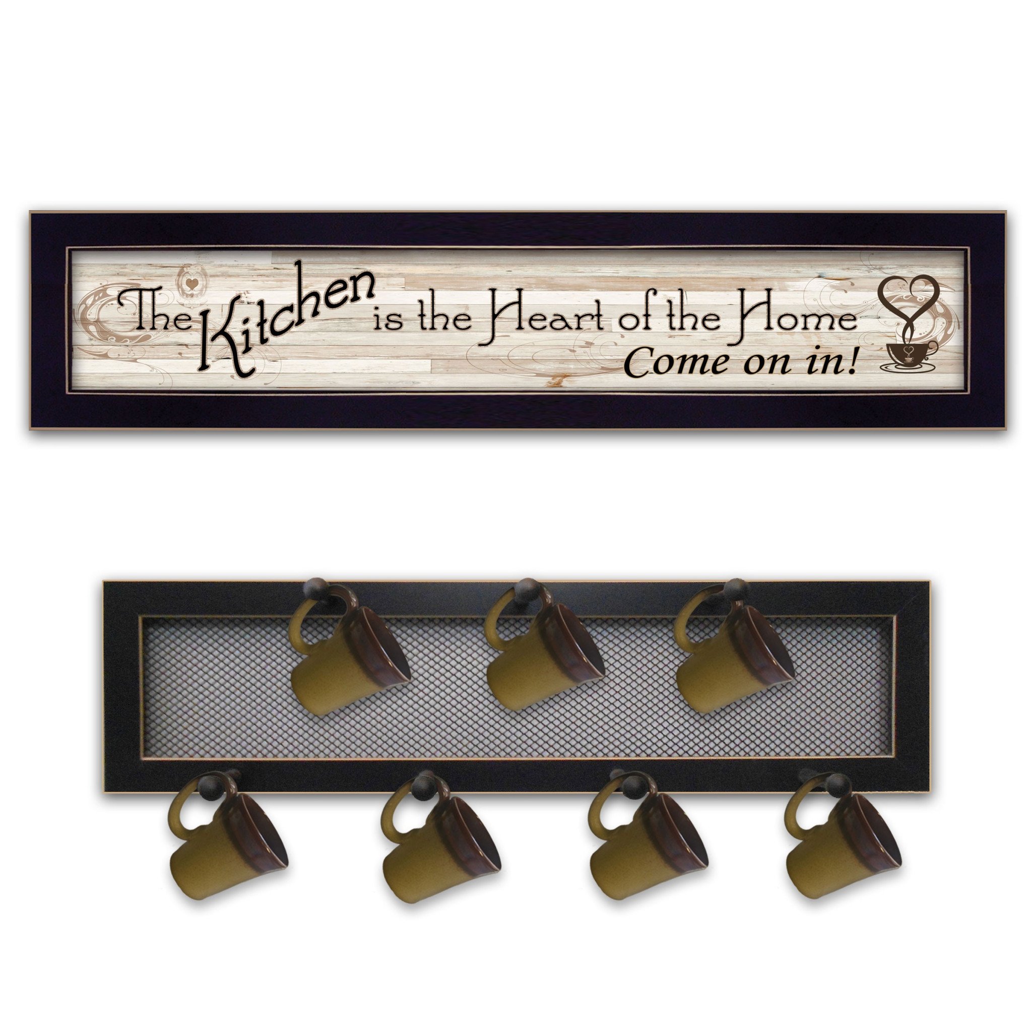 Set Of Two Heart Of The Home Black Framed Kitchen Wall Art With Seven Peg Mug Rack