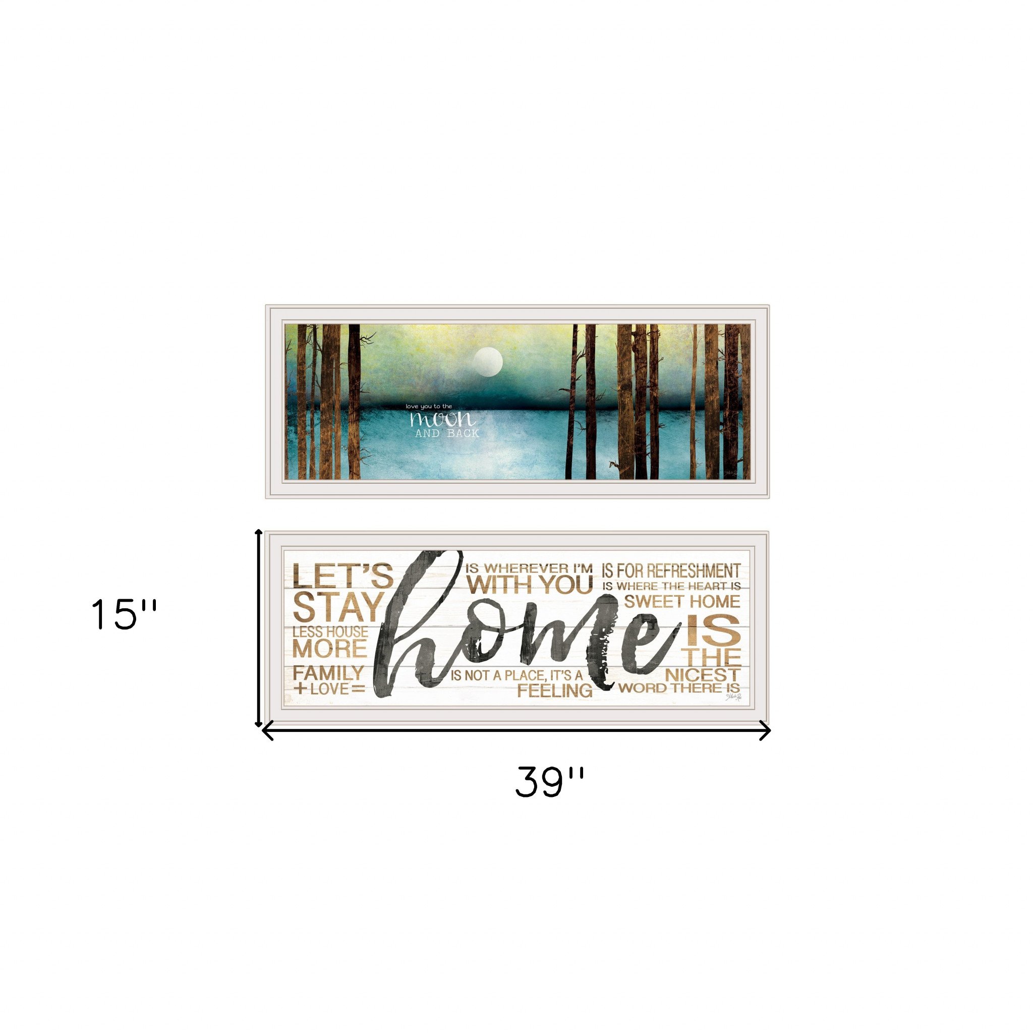 This set of two love or home 3 white framed print wall art will add a beautiful decorative accent to your decor. This print is a visual artistic expression that allows you to decorate your space in style. Reproduced for you on paper, this hanging decorative accent will be a trendy and fashionable way to dress your walls. Hang on your wall to add some up to date fashion and decoration. Utilize this opportunity to create a focal point in the room with this fabulous wall decor option. 15-inch H x 39-inch W x 1-inch D