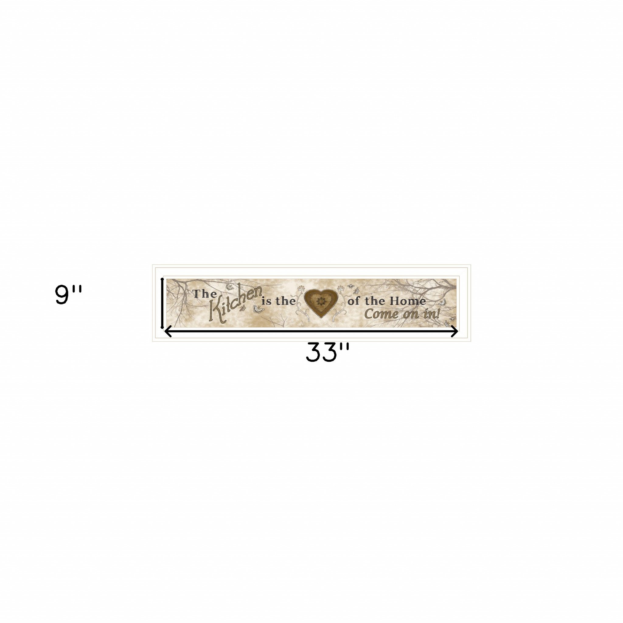 Unique and decorative, this vintage kitchen 1 white framed print kitchen wall art will leave a lasting impression. This print is a visual artistic expression that allows you to decorate your space in style. Reproduced for you on paper, this hanging decorative accent will be a trendy and fashionable way to dress your walls. Adding this hanging wall art to your space to make your room feel more finished and attractive. Utilize this opportunity to create a focal point in the room with this fabulous wall decor option. 9-inch H x 33-inch W x 1-inch D