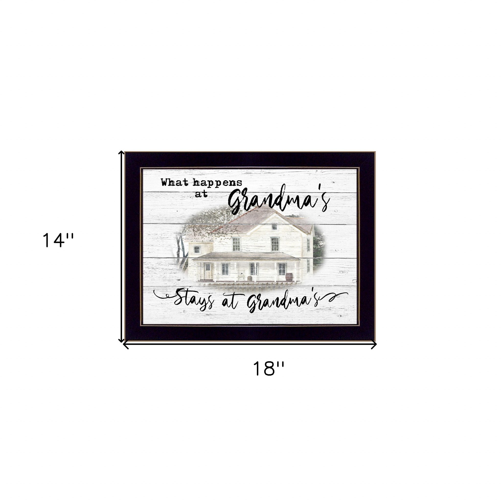 Add an air of fashion to your room and rejuvenate the space with this stays at grandmas 1 black framed print wall art. This print is a visual artistic expression that allows you to decorate your space in style. Reproduced for you on paper, this hanging decorative accent will be a trendy and fashionable way to dress your walls. Adding this hanging wall art to your space to make your room feel more finished and attractive. Instantly liven up your space with this art that brings color and dimension to your walls. 14-inch H x 18-inch W x 1-inch D