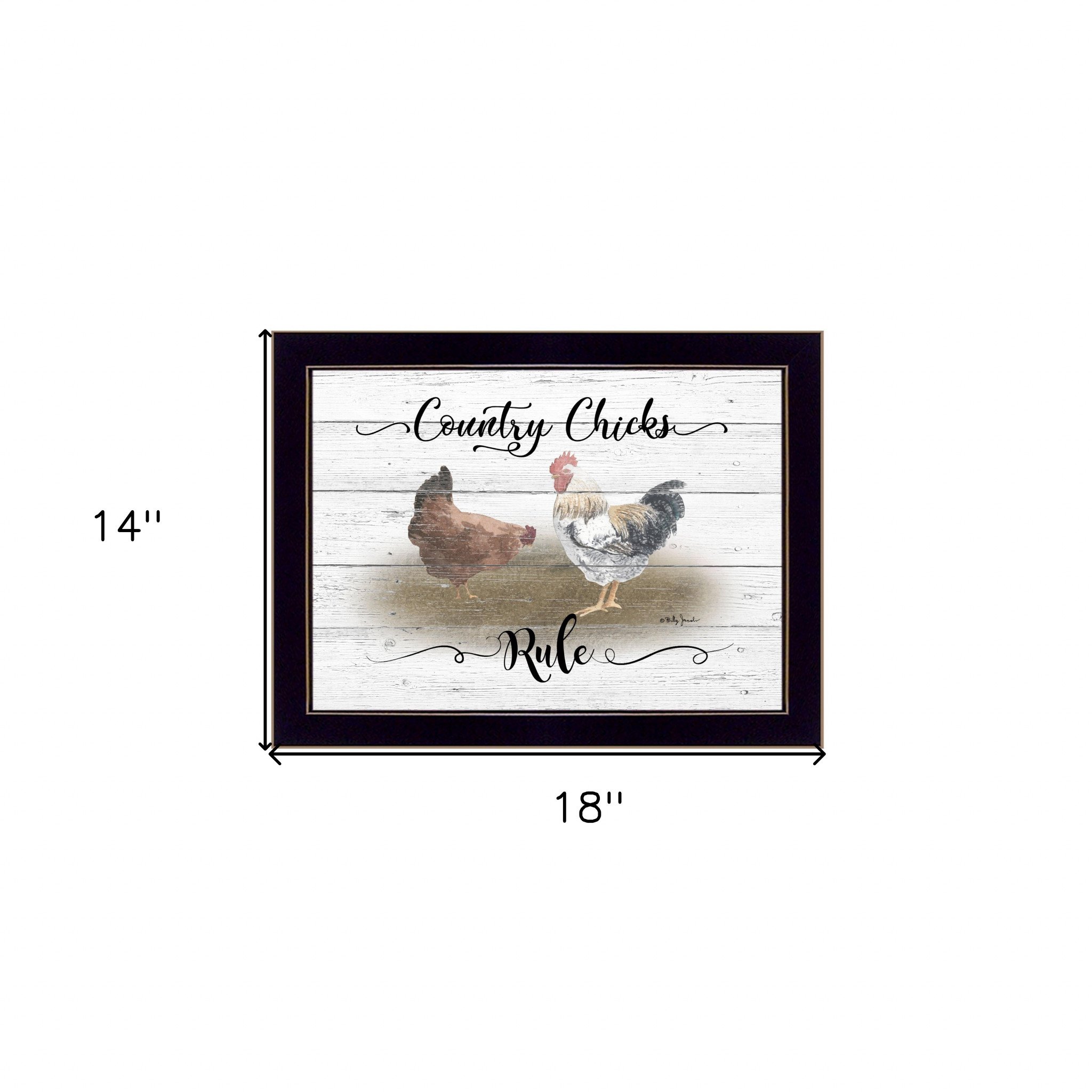 This country chicks rule 1 black framed print wall art will add a beautiful decorative accent to your decor. This print is a visual artistic expression that allows you to decorate your space in style. Reproduced for you on paper, this hanging decorative accent will be a trendy and fashionable way to dress your walls. Adding this hanging wall art to your space to make your room feel more finished and attractive. Utilize this opportunity to create a focal point in the room with this fabulous wall decor option. 14-inch H x 18-inch W x 1-inch D