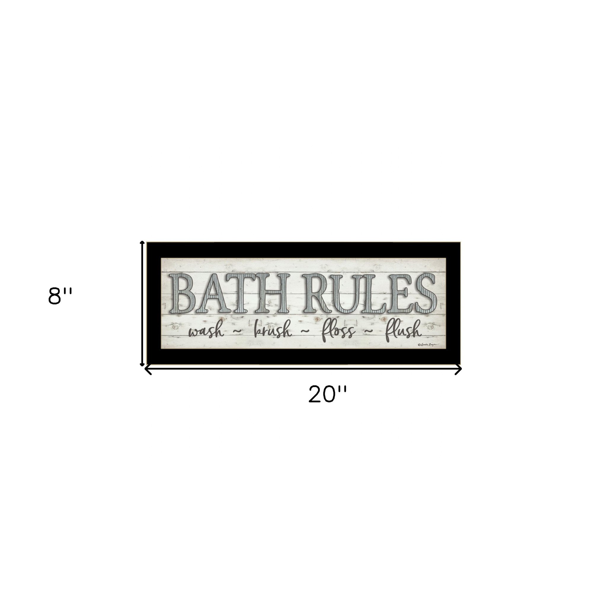 Bring some sizzle to your space with this eye-catching bath rules 3 black framed print bathroom wall art. This print is a visual artistic expression that allows you to decorate your space in style. Reproduced for you on paper, this hanging decorative accent will be a trendy and fashionable way to dress your walls. Adding this hanging wall art to your space to make your room feel more finished and attractive. Utilize this opportunity to create a focal point in the room with this fabulous wall decor option. 8-inch H x 20-inch W x 1-inch D