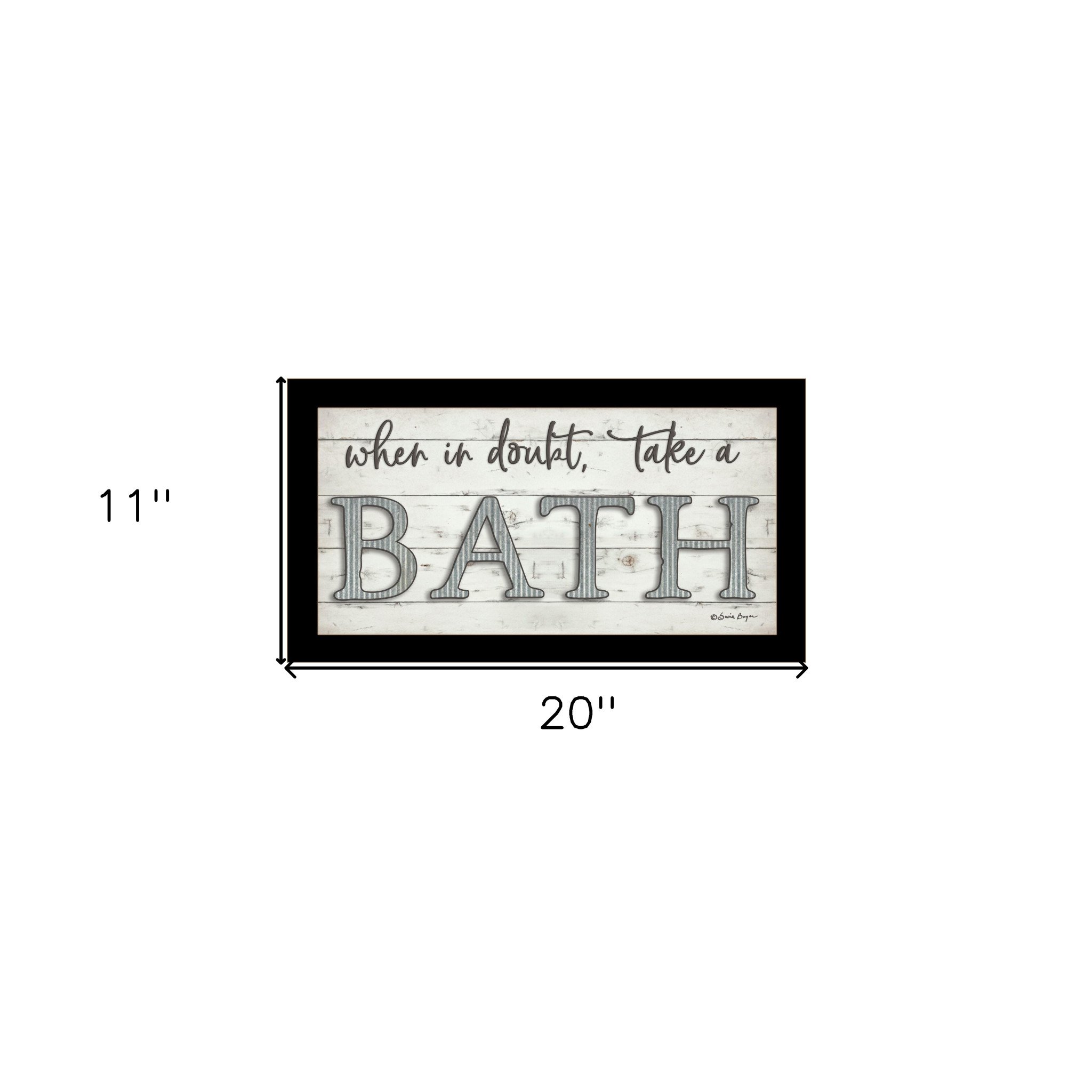 Bring some sizzle to your space with this eye-catching when in doubt take a bath black framed print bathroom wall art. This print is a visual artistic expression that allows you to decorate your space in style. Reproduced for you on paper, this hanging decorative accent will be a trendy and fashionable way to dress your walls. Adding this hanging wall art to your space to make your room feel more finished and attractive. Instantly liven up your space with this art that brings color and dimension to your walls. 11-inch H x 20-inch W x 1-inch D