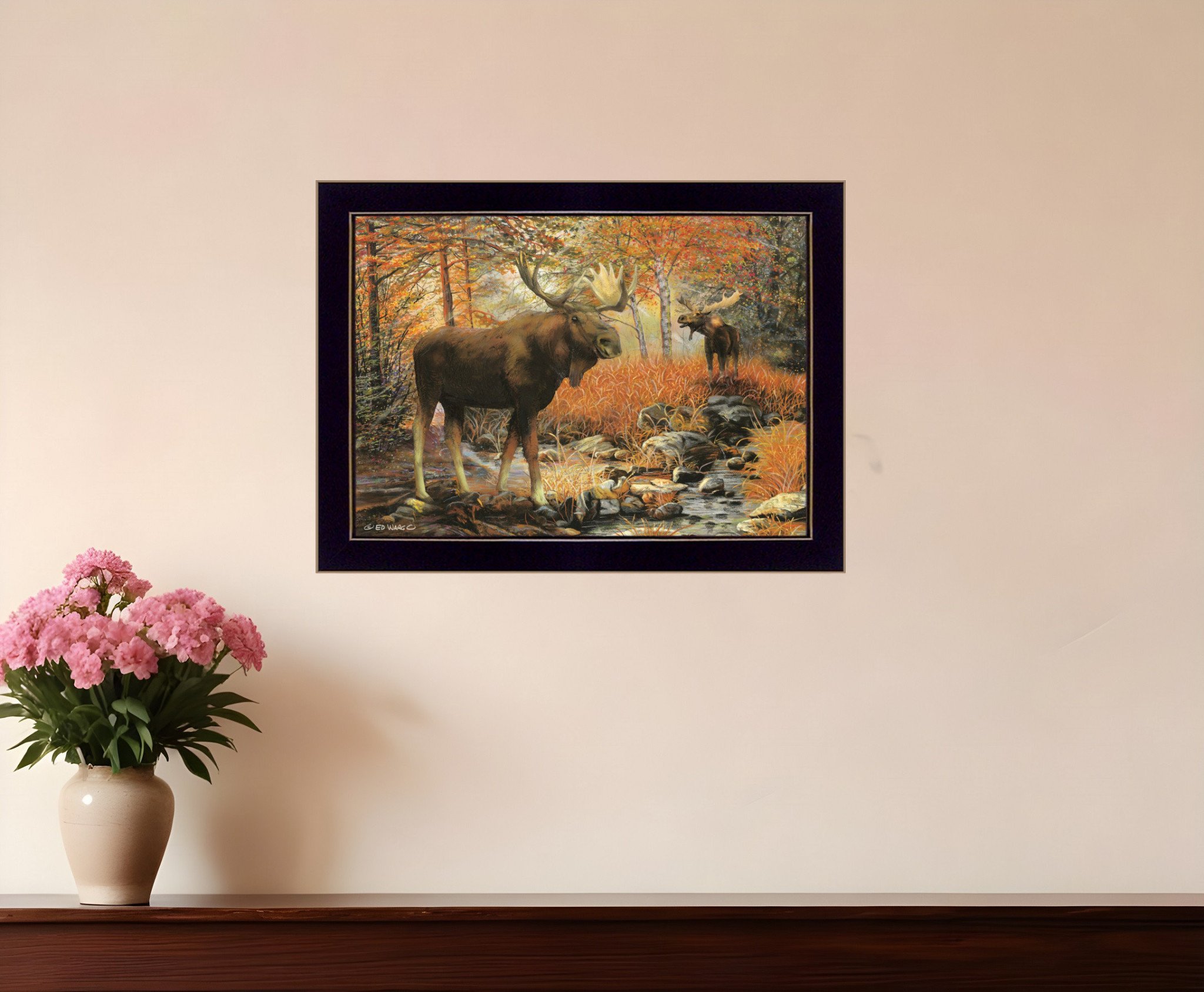 Unique and decorative, this call of the wild 1 black framed print wall art will leave a lasting impression. Add a sense of the woods, mountain or lodge lifestyle to your walls with this outdoorsy moose wall art. This print is a visual artistic expression that allows you to decorate your space in style. Reproduced for you on paper, this hanging decorative accent will be a trendy and fashionable way to dress your walls. Hang on your wall to add some up to date fashion and decoration. Utilize this opportunity to create a focal point in the room with this fabulous wall decor option. 14-inch H x 18-inch W x 1-inch D