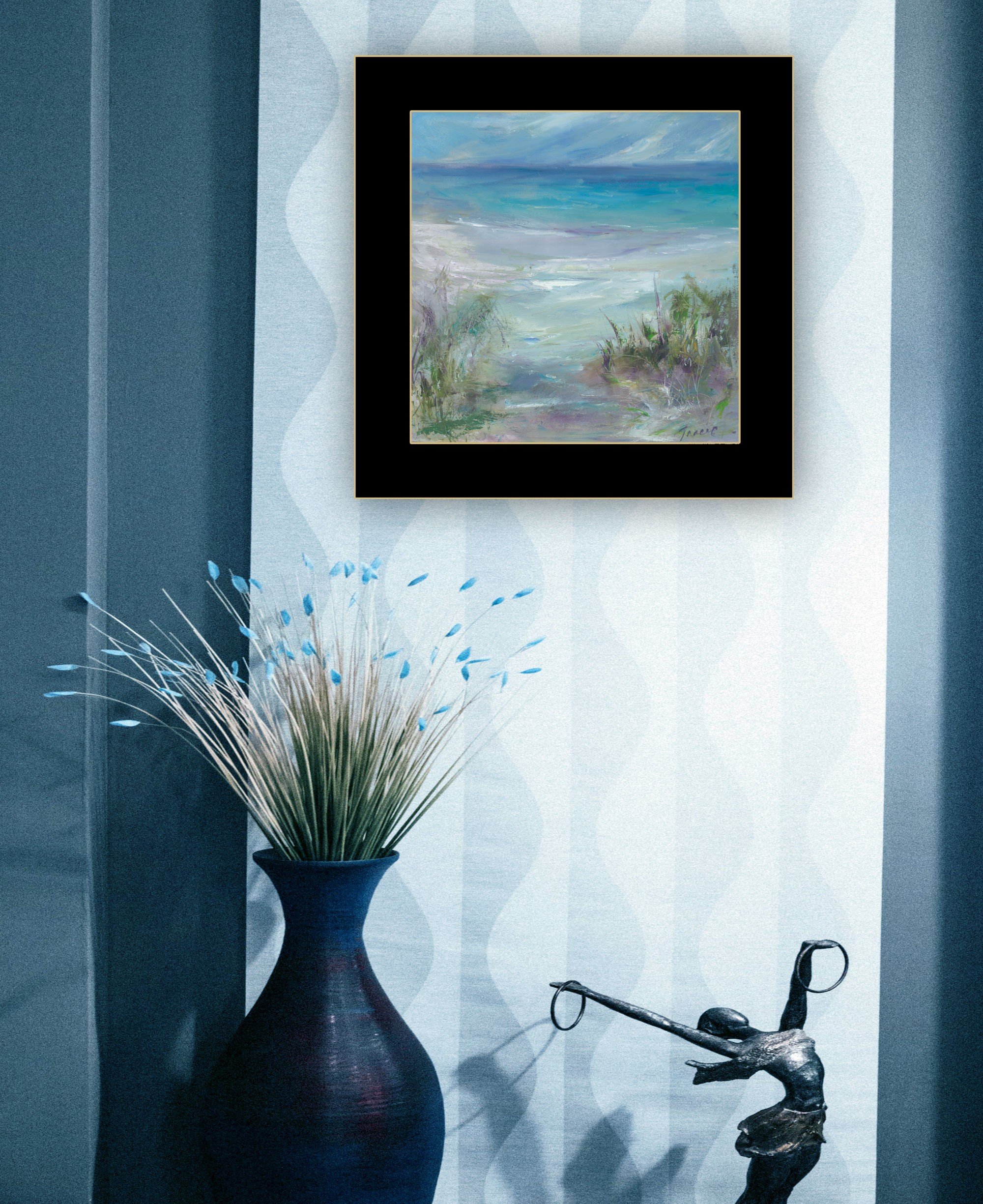 The blue horizons ocean view black framed print wall art is the perfect decorative accessory for your home. This print is a visual artistic expression that allows you to decorate your space in style. Reproduced for you on paper, this hanging decorative accent will be a trendy and fashionable way to dress your walls. Hang on your wall to add some up to date fashion and decoration. Instantly liven up your space with this art that brings color and dimension to your walls. 14 inches H x 14 inches W x 1 inches D