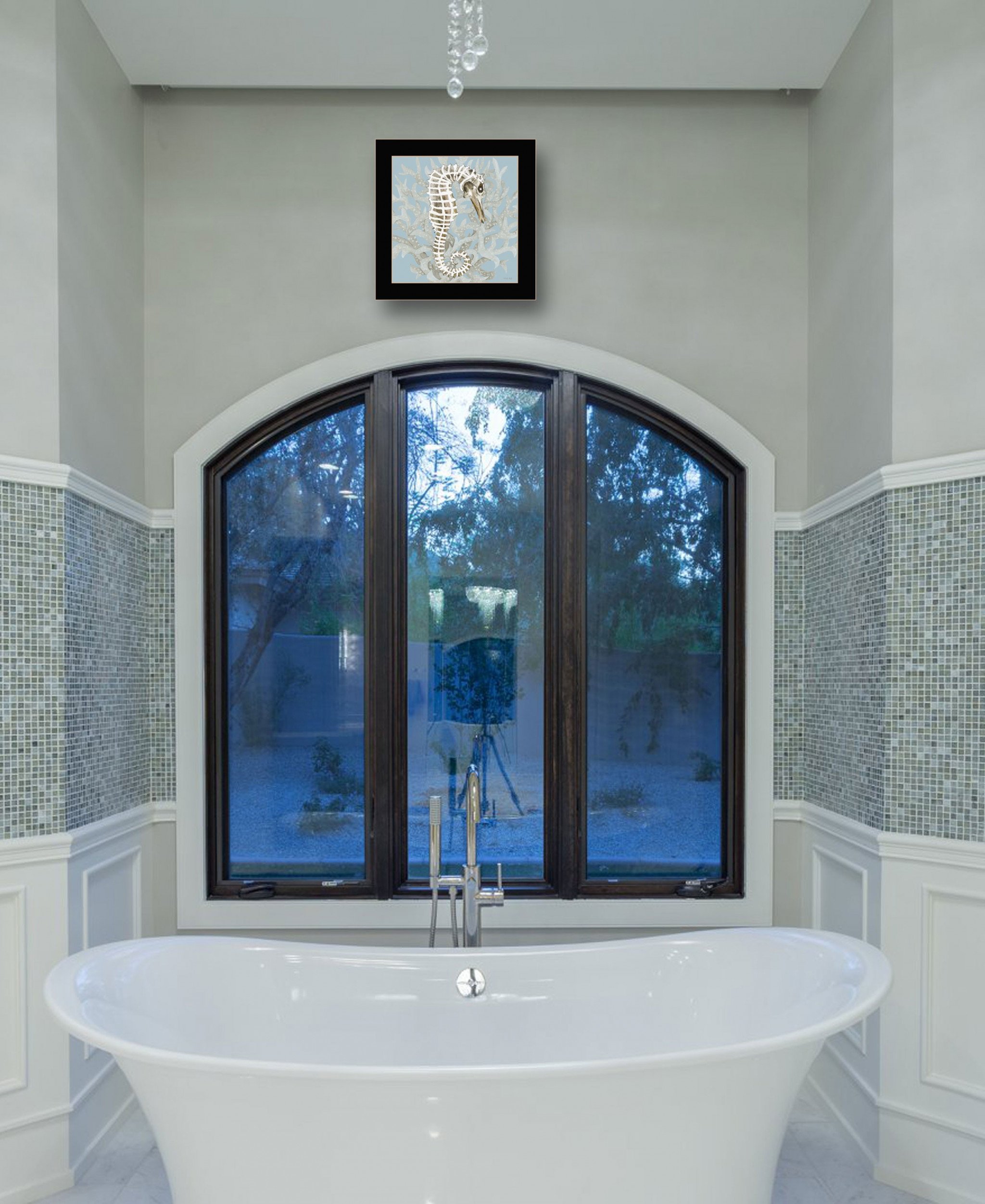 Unique and decorative, this coral seahorse i 1 black framed print wall art will leave a lasting impression. This print is a visual artistic expression that allows you to decorate your space in style. Reproduced for you on wood, this hanging decorative accent will be a trendy and fashionable way to dress your walls in a rustic and modern farmhouse vibe. Hang on your wall to add some up to date fashion and decoration. Utilize this opportunity to create a focal point in the room with this fabulous wall decor option. 14-inch H x 14-inch W x 1-inch D
