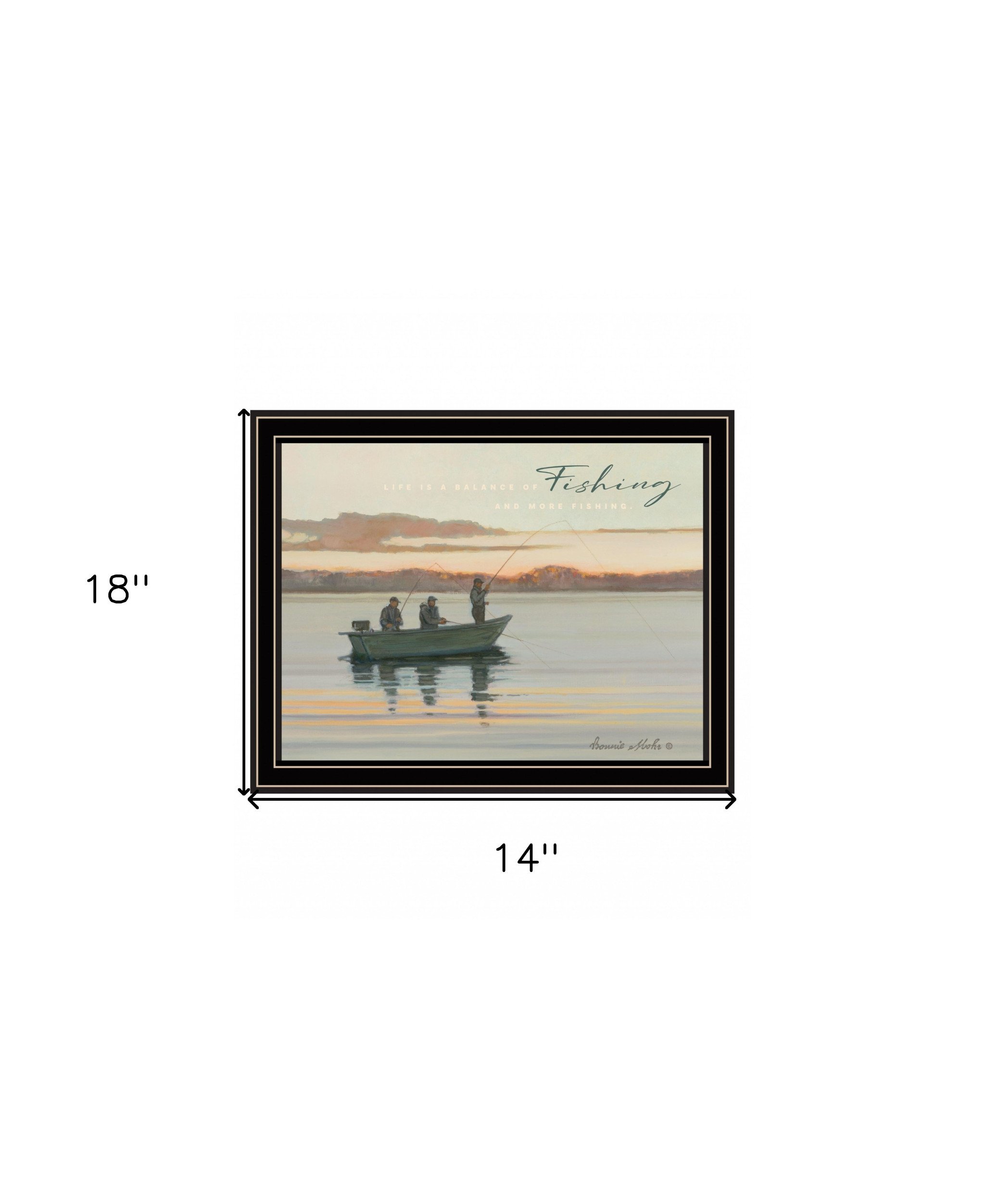The fishing 1 black framed print wall art is the perfect decorative accessory for your home. This print is a visual artistic expression that allows you to decorate your space in style. Reproduced for you on wood, this hanging decorative accent will be a trendy and fashionable way to dress your walls in a rustic and modern farmhouse vibe. Hang on your wall to add some up to date fashion and decoration. Instantly liven up your space with this art that brings color and dimension to your walls. 14-inch H x 18-inch W x 1-inch D