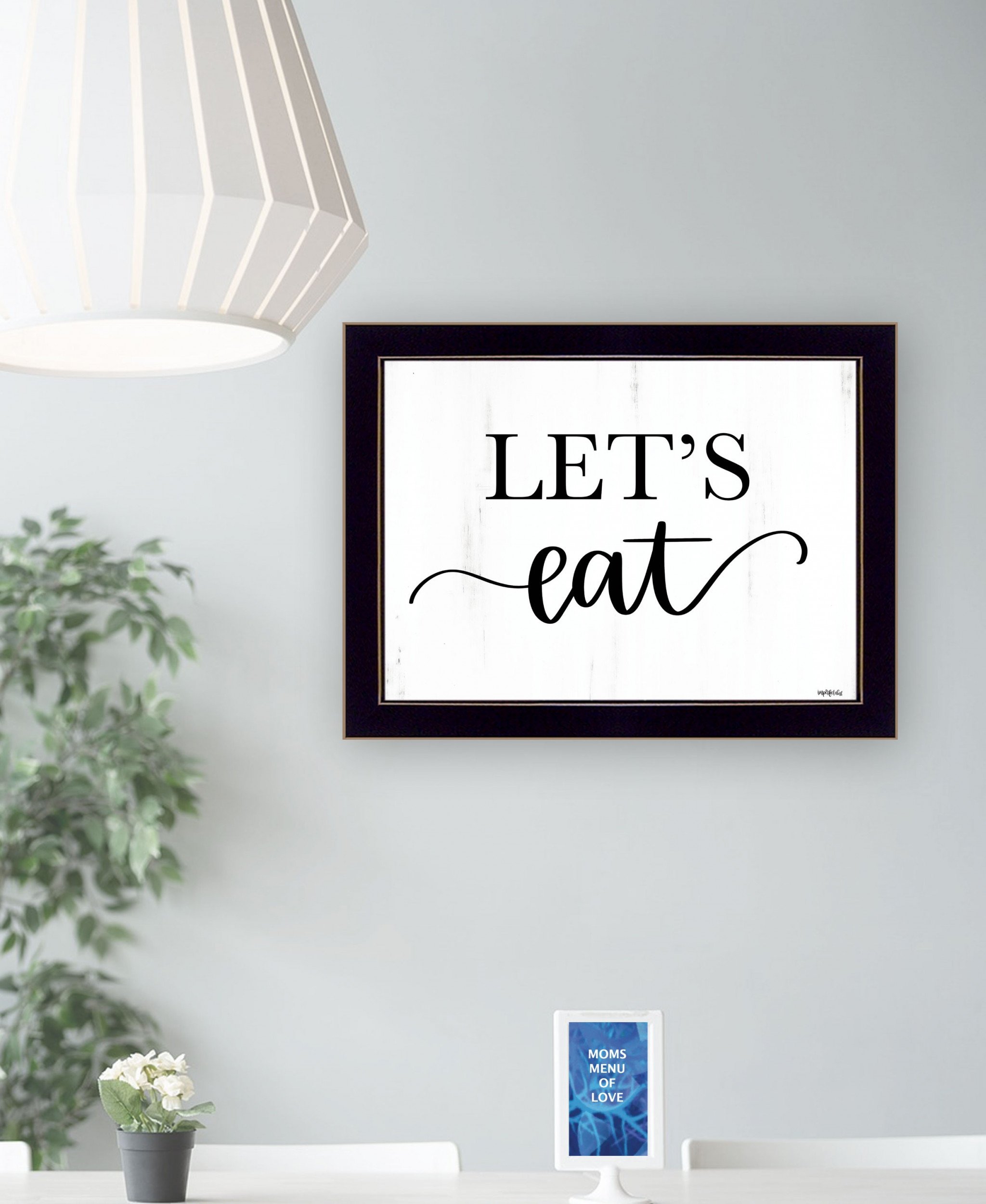 The lets eat 1 black framed print kitchen wall art is the perfect decorative accessory for your home. This print is a visual artistic expression that allows you to decorate your space in style. Reproduced for you on wood, this hanging decorative accent will be a trendy and fashionable way to dress your walls in a rustic and modern farmhouse vibe. Adding this hanging wall art to your space to make your room feel more finished and attractive. Utilize this opportunity to create a focal point in the room with this fabulous wall decor option. 14-inch H x 18-inch W x 1-inch D