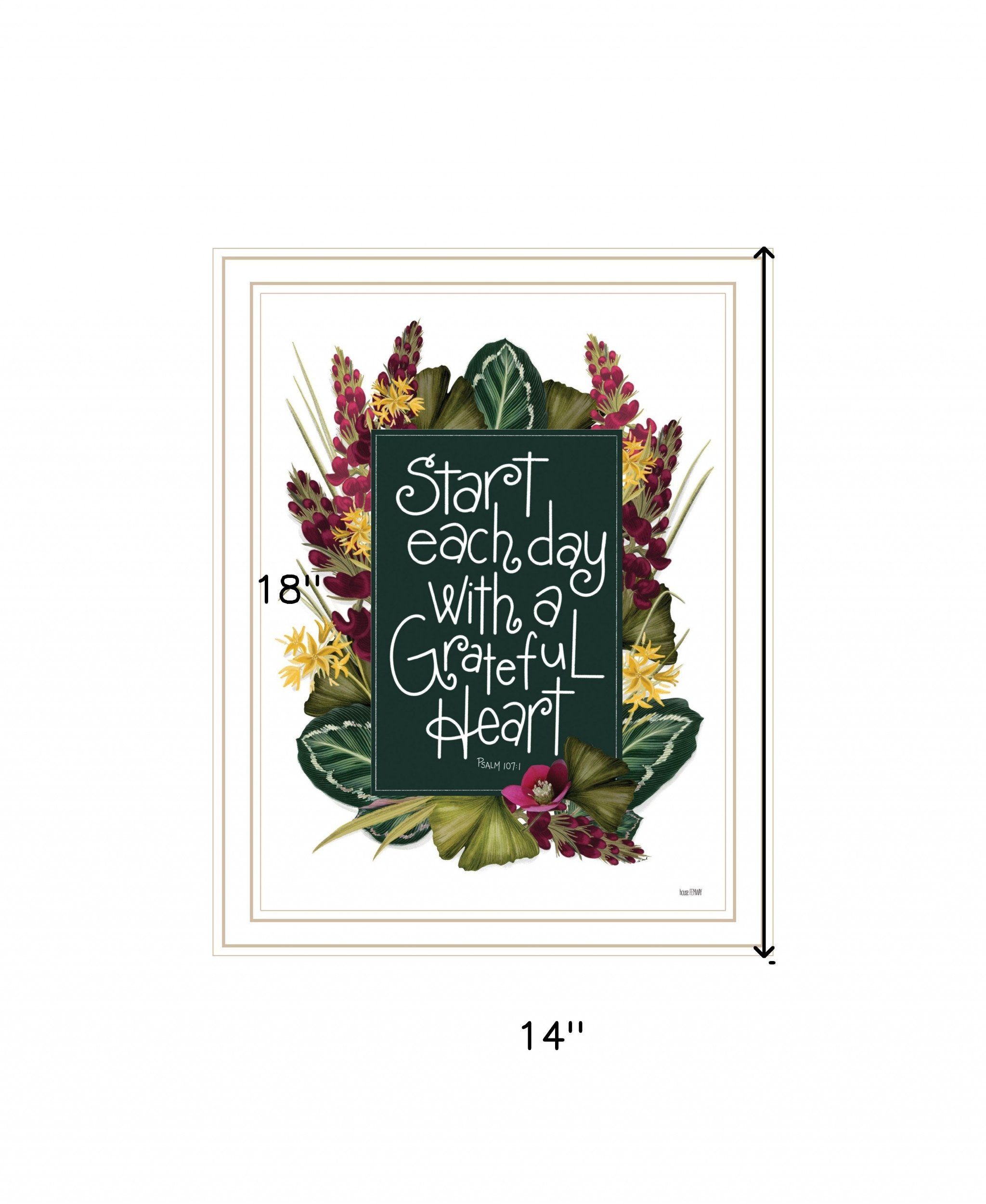 Unique and decorative, this grateful heart 2 white framed print wall art will leave a lasting impression. This print is a visual artistic expression that allows you to decorate your space in style. Reproduced for you on wood, this hanging decorative accent will be a trendy and fashionable way to dress your walls in a rustic and modern farmhouse vibe. Adding this hanging wall art to your space to make your room feel more finished and attractive. Instantly liven up your space with this art that brings color and dimension to your walls. 18-inch H x 14-inch W x 1-inch D