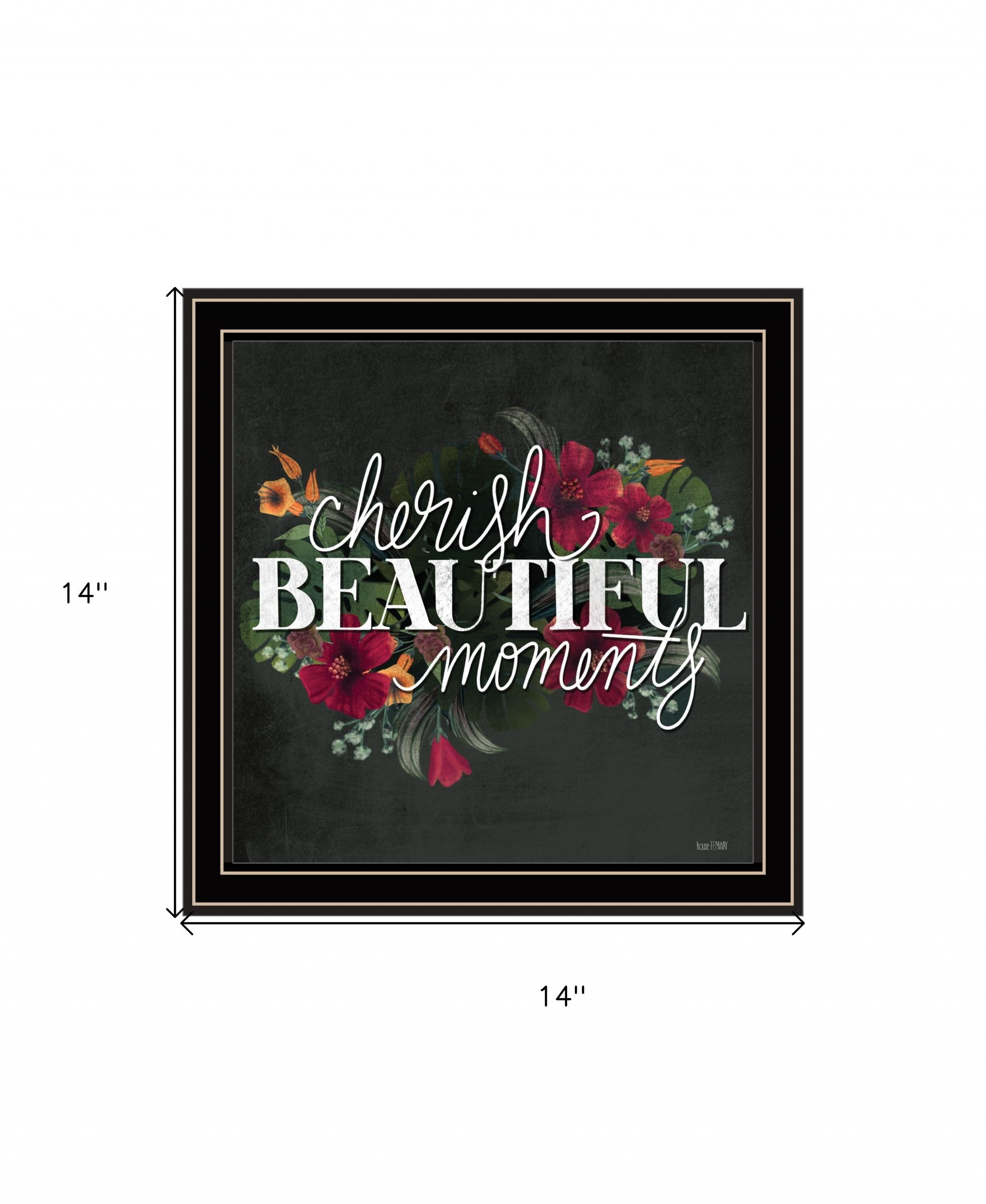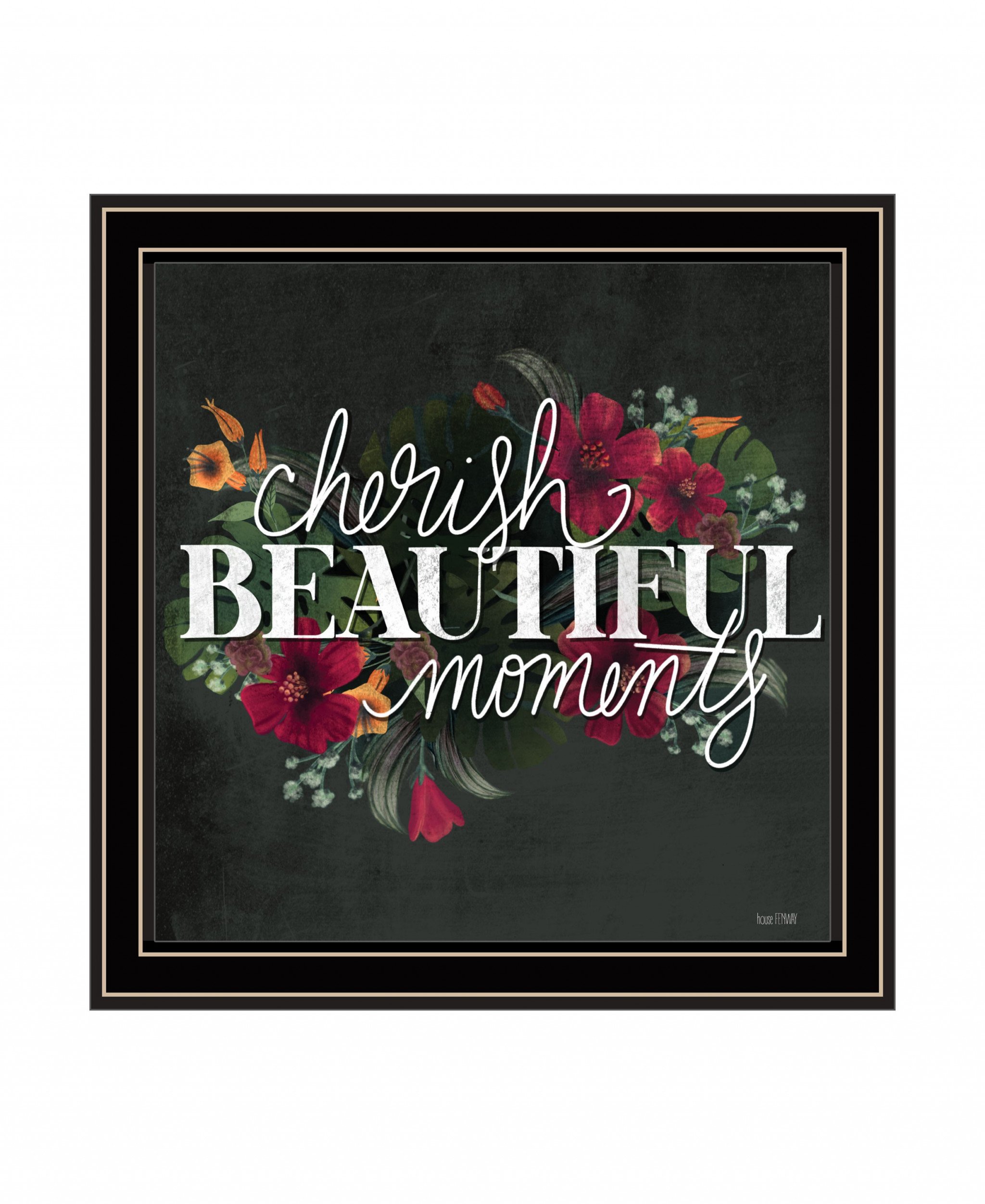 The cherish the moments 1 black framed print wall art is the perfect decorative accessory for your home. This print is a visual artistic expression that allows you to decorate your space in style. Reproduced for you on wood, this hanging decorative accent will be a trendy and fashionable way to dress your walls in a rustic and modern farmhouse vibe. Adding this hanging wall art to your space to make your room feel more finished and attractive. Utilize this opportunity to create a focal point in the room with this fabulous wall decor option. 14-inch H x 14-inch W x 1-inch D