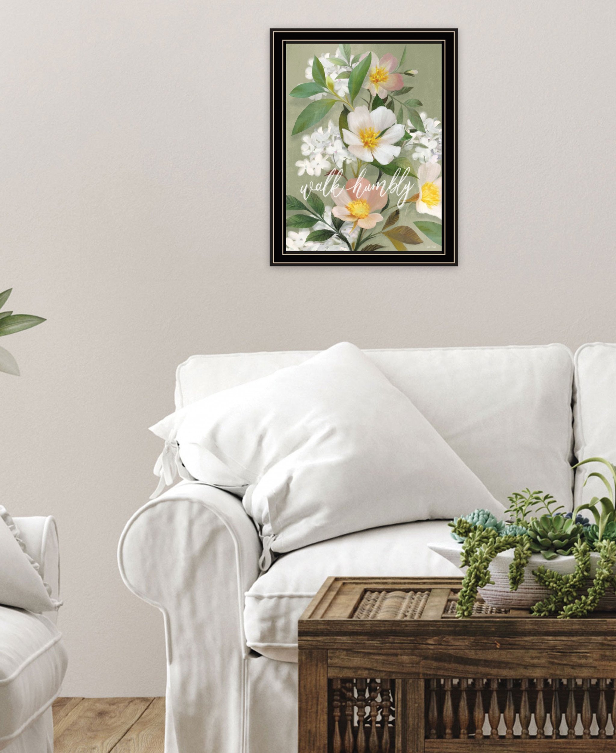 Add an air of fashion to your room and rejuvenate the space with this walk humbly floral 1 black framed print wall art. This print is a visual artistic expression that allows you to decorate your space in style. Reproduced for you on wood, this hanging decorative accent will be a trendy and fashionable way to dress your walls in a rustic and modern farmhouse vibe. Adding this hanging wall art to your space to make your room feel more finished and attractive. Utilize this opportunity to create a focal point in the room with this fabulous wall decor option. 18-inch H x 14-inch W x 1-inch D