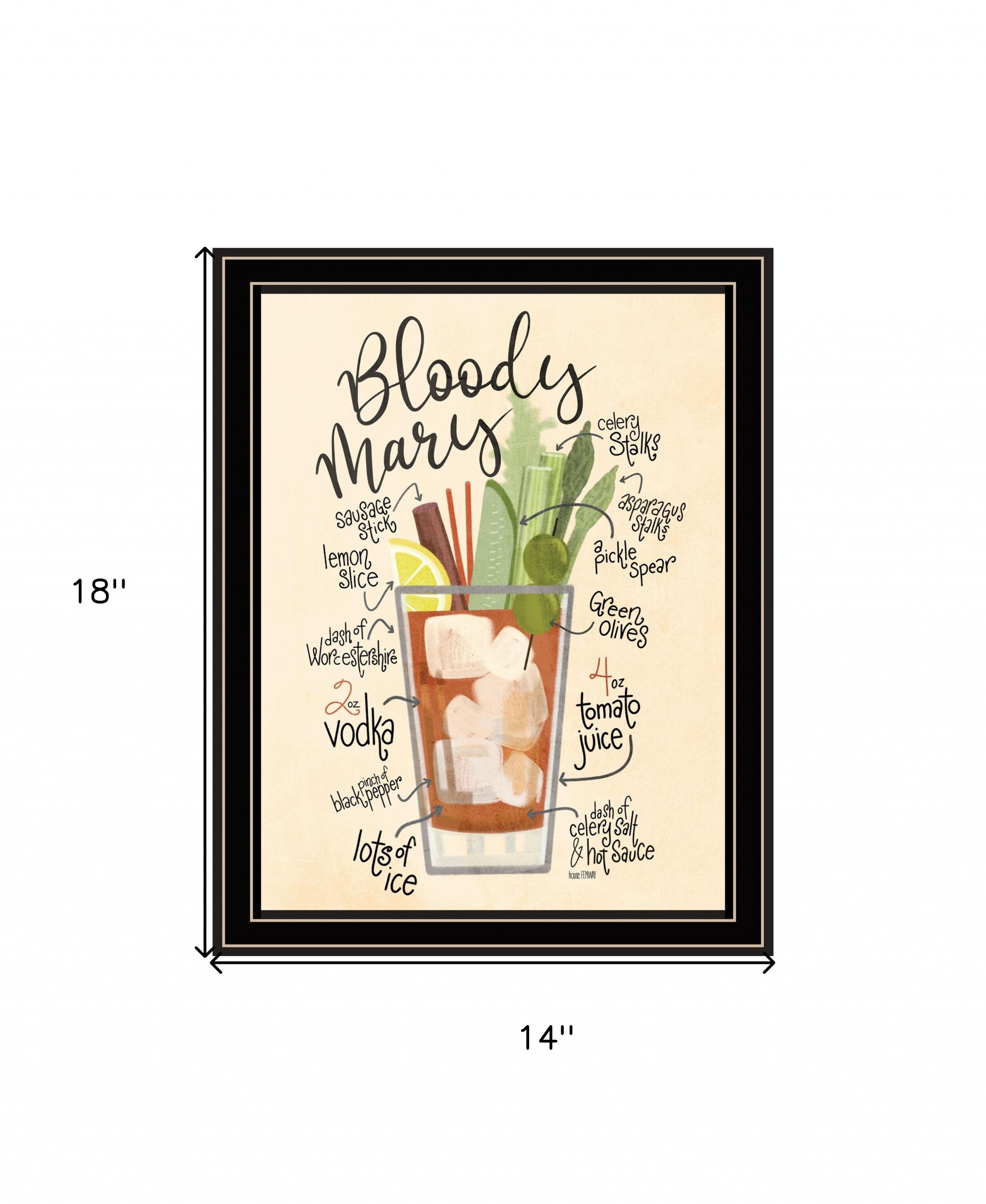 Unique and decorative, this bloody mary 1 black framed print wall art will leave a lasting impression. This print is a visual artistic expression that allows you to decorate your space in style. Reproduced for you on wood, this hanging decorative accent will be a trendy and fashionable way to dress your walls in a rustic and modern farmhouse vibe. Adding this hanging wall art to your space to make your room feel more finished and attractive. Utilize this opportunity to create a focal point in the room with this fabulous wall decor option. 18-inch H x 14-inch W x 1-inch D