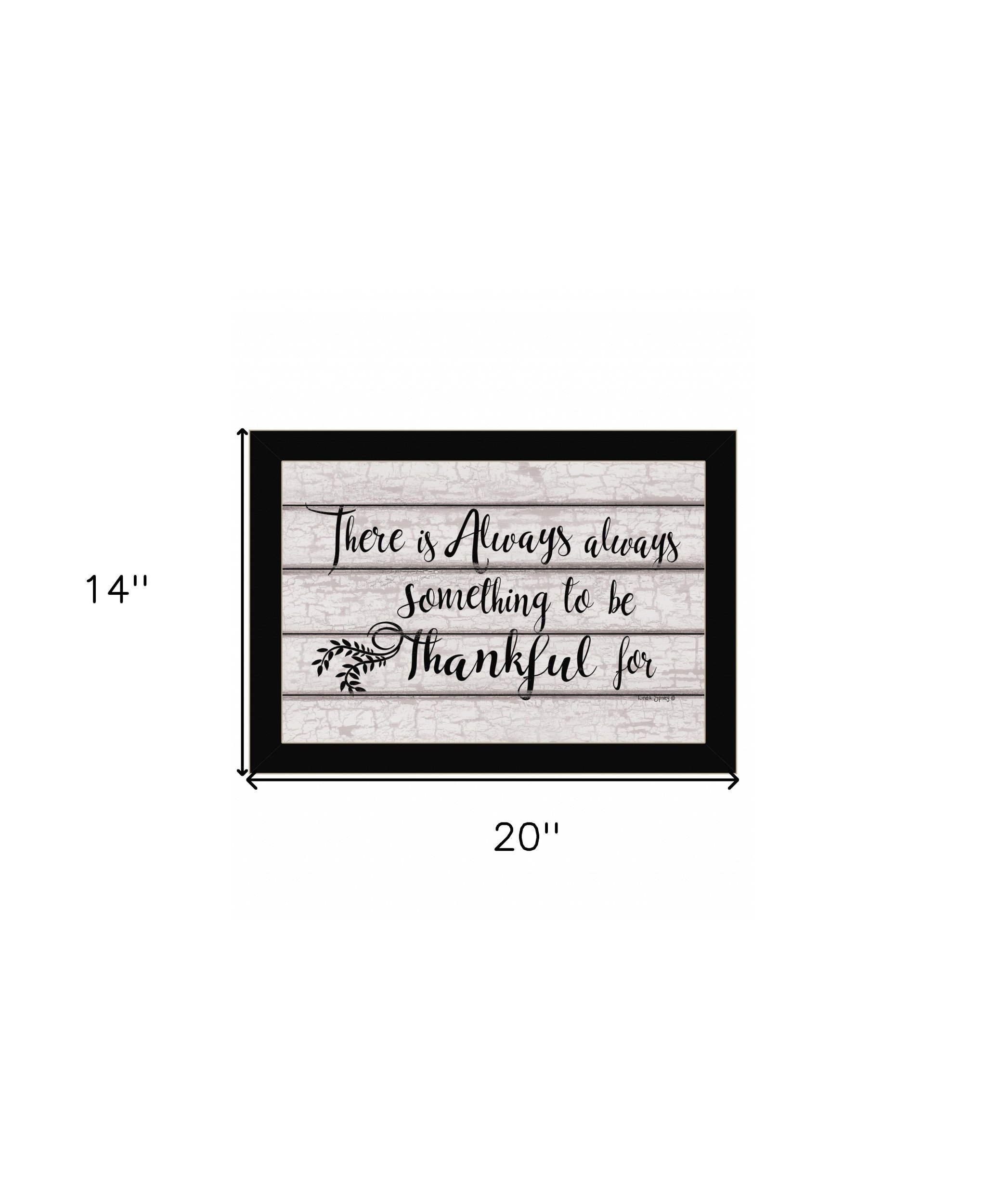 Bring some sizzle to your space with this eye-catching always thankful 1 black framed print wall art. This print is a visual artistic expression that allows you to decorate your space in style. Reproduced for you on wood, this hanging decorative accent will be a trendy and fashionable way to dress your walls in a rustic and modern farmhouse vibe. Adding this hanging wall art to your space to make your room feel more finished and attractive. Utilize this opportunity to create a focal point in the room with this fabulous wall decor option. 14-inch H x 20-inch W x 1-inch D