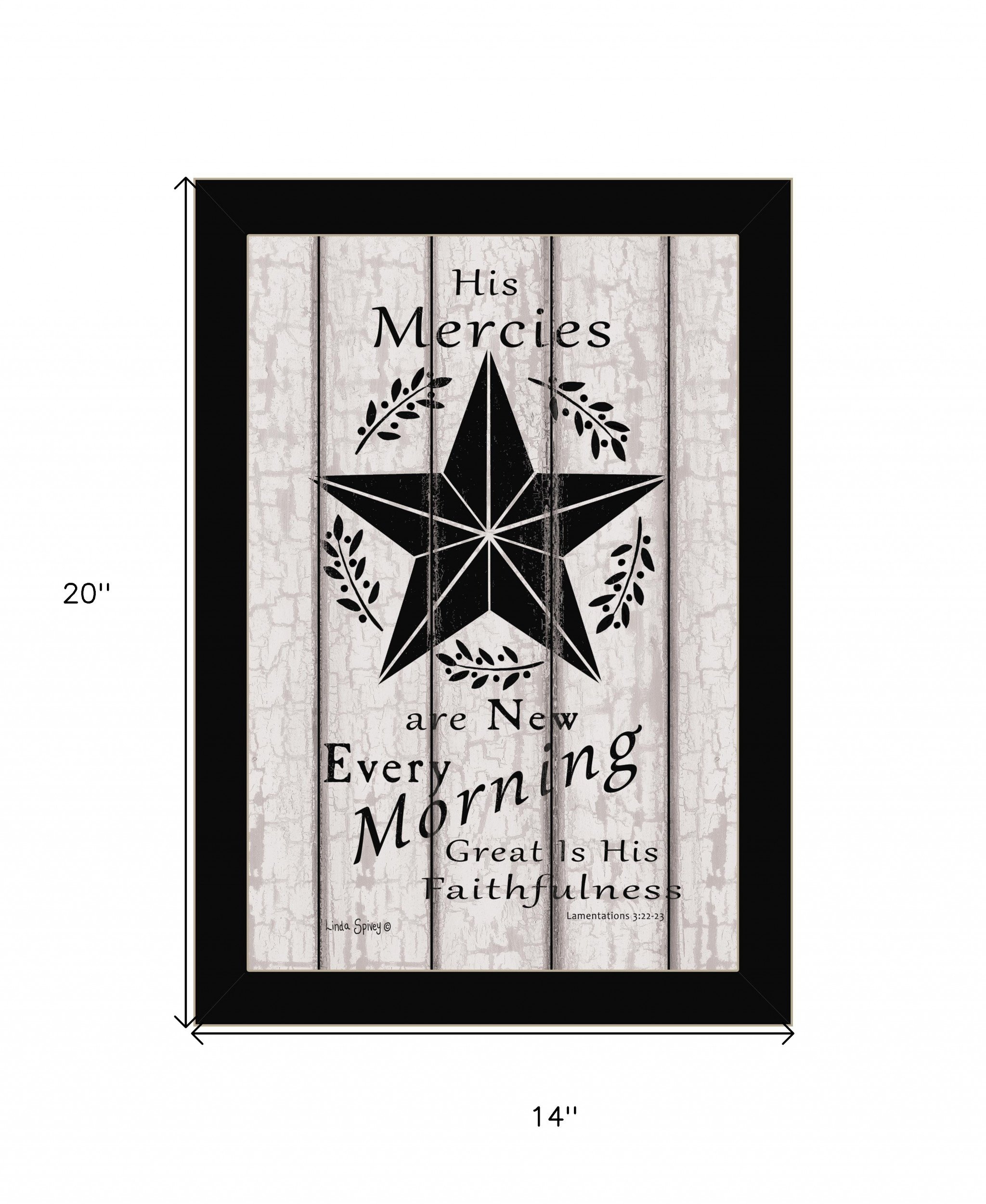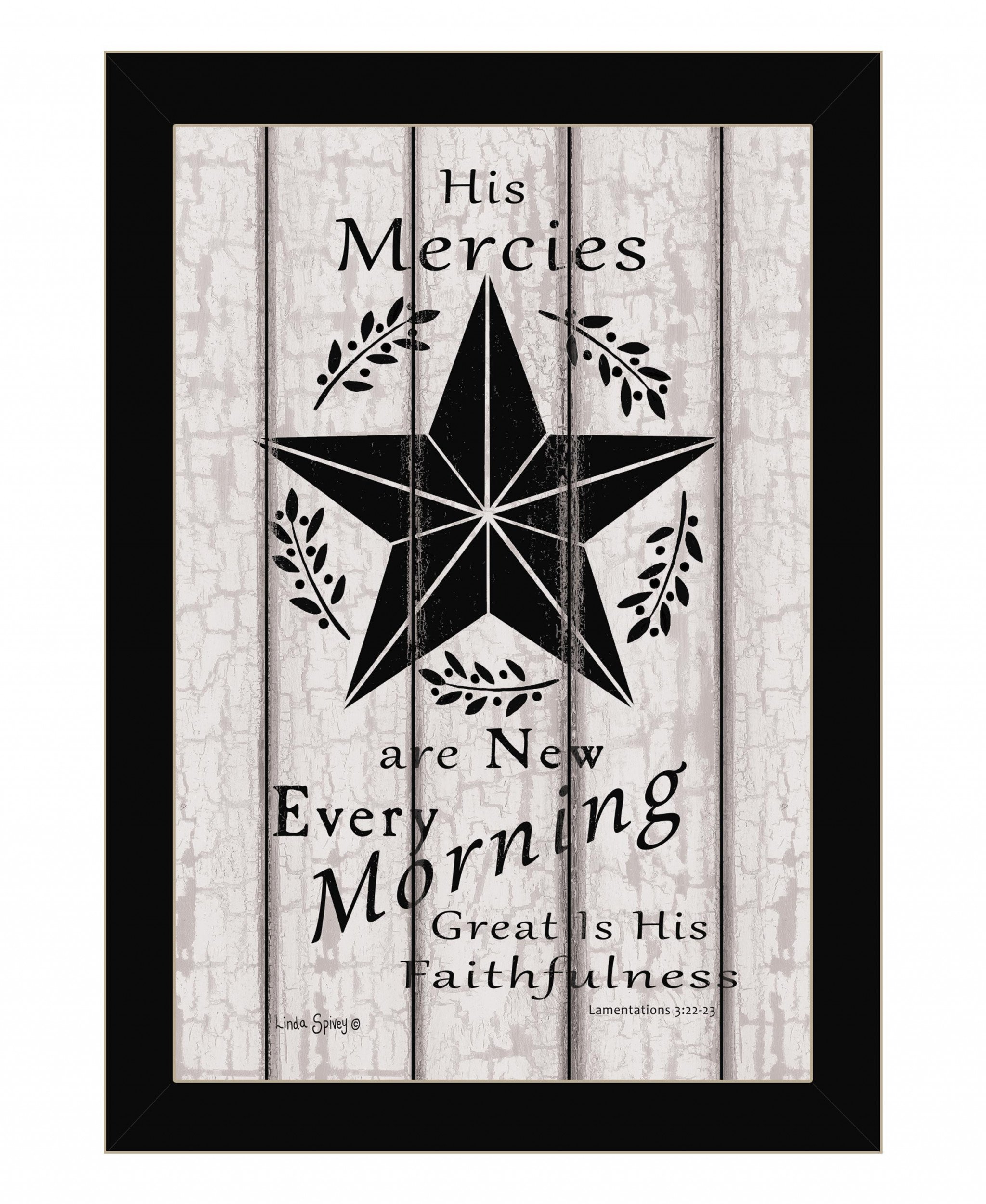 This his mercies are new every morning 1 black framed print wall art is a great way to celebrate and decorate for the holidays. This print is a visual artistic expression that allows you to decorate your space in style. Reproduced for you on wood, this hanging decorative accent will be a trendy and fashionable way to dress your walls in a rustic and modern farmhouse vibe. Hang on your wall to add some up to date fashion and decoration. Instantly liven up your space with this art that brings color and dimension to your walls. 20-inch H x 14-inch W x 1-inch D