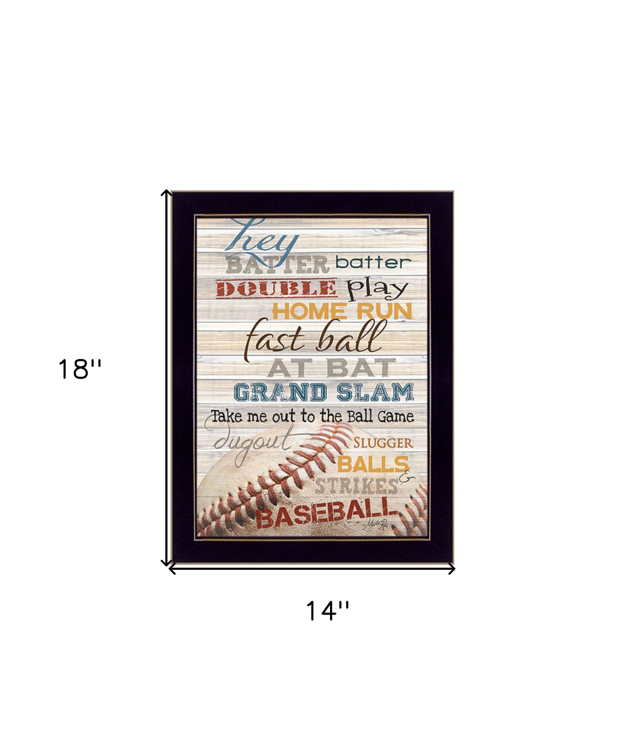 Bring some sizzle to your space with this eye-catching hey batter batter 3 black framed print wall art. This print is a visual artistic expression that allows you to decorate your space in style. Reproduced for you on wood, this hanging decorative accent will be a trendy and fashionable way to dress your walls in a rustic and modern farmhouse vibe. Hang on your wall to add some up to date fashion and decoration. Utilize this opportunity to create a focal point in the room with this fabulous wall decor option. 18-inch H x 14-inch W x 1-inch D