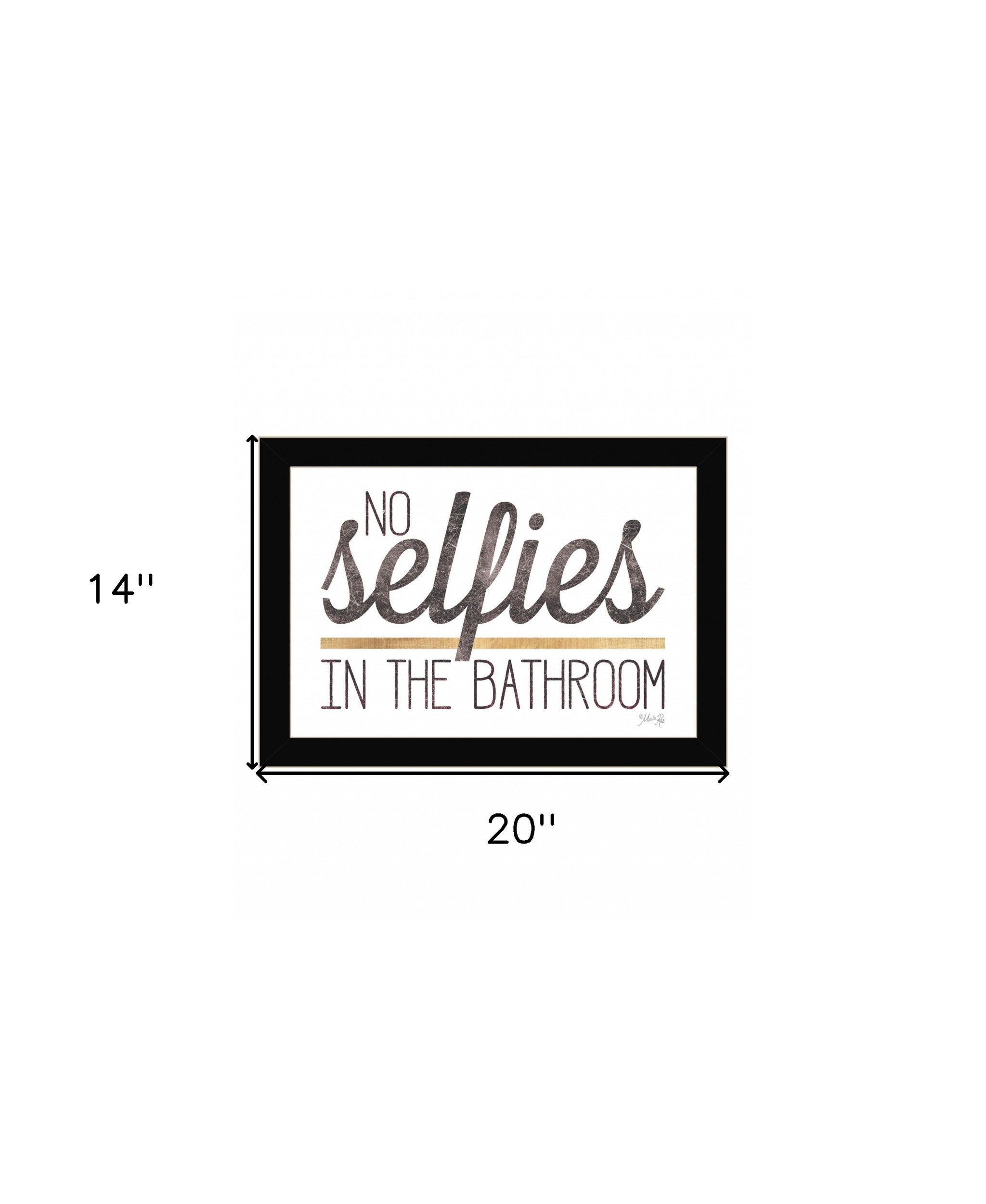 Add an air of fashion to your room and rejuvenate the space with this no selfies in the bathroom 4 black framed print bathroom wall art. This print is a visual artistic expression that allows you to decorate your space in style. Reproduced for you on wood, this hanging decorative accent will be a trendy and fashionable way to dress your walls in a rustic and modern farmhouse vibe. Hang on your wall to add some up to date fashion and decoration. Utilize this opportunity to create a focal point in the room with this fabulous wall decor option. 14-inch H x 20-inch W x 1-inch D