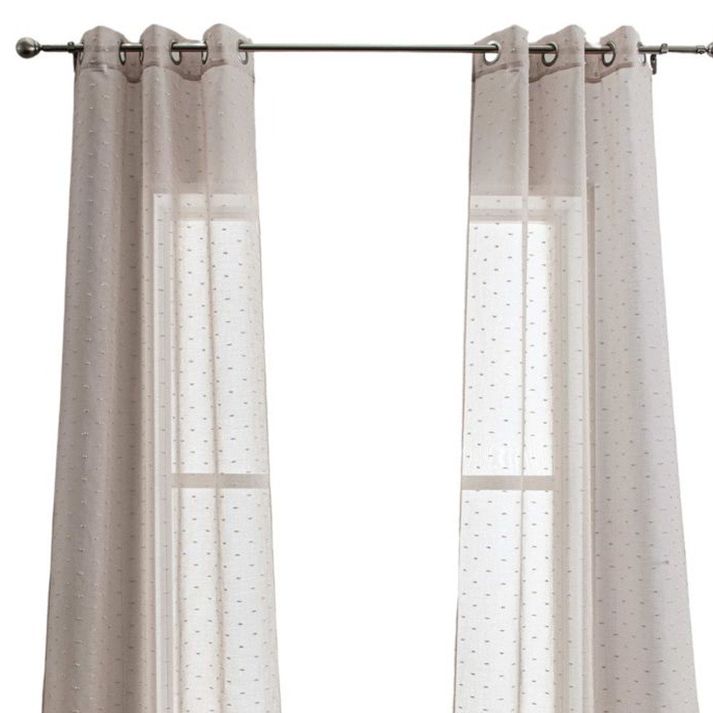 Enhance the beauty of your home decor with this set of two 84-inch tan ribbon embellished window curtain panels. These semi-sheer curtains filter just enough light to create a warm and inviting ambiance in your living space. Made of high-quality polyester, these contemporary-style panels feature a stunning tan color that complements any interior. With a width of 38 inches per panel and a length of 84 inches, they provide ample coverage for your windows. The delicate ribbon embellishments add a touch of elegance and sophistication to your room, making these curtains a perfect addition to your contemporary home decor. Bring style and functionality together with these exquisite curtain panels. 84-inch H x 76-inch W x 1-inch D