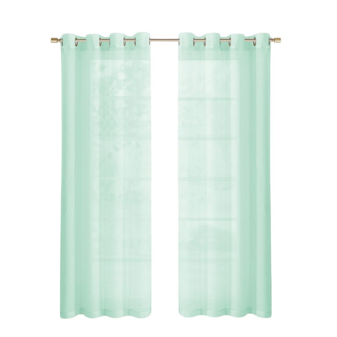 Enhance your home decor with this set of two 84-inch aqua solid modern window panels. These contemporary-style curtains will add a touch of elegance and sophistication to any room. Made of high-quality polyester material, they are durable and easy to care for. The aqua color brings a refreshing and calming vibe to your living space, while the semi-sheer light filtration allows natural light to gently illuminate the room. With two panels included, you can easily cover your windows for privacy or adjust them for a stylish look. The single panel width of 52 inches and a length of 84 inches ensure ample coverage for most window sizes. Elevate the aesthetic appeal of your home with these stunning aqua curtains. 84-inch H x 108-inch W x 1-inch D