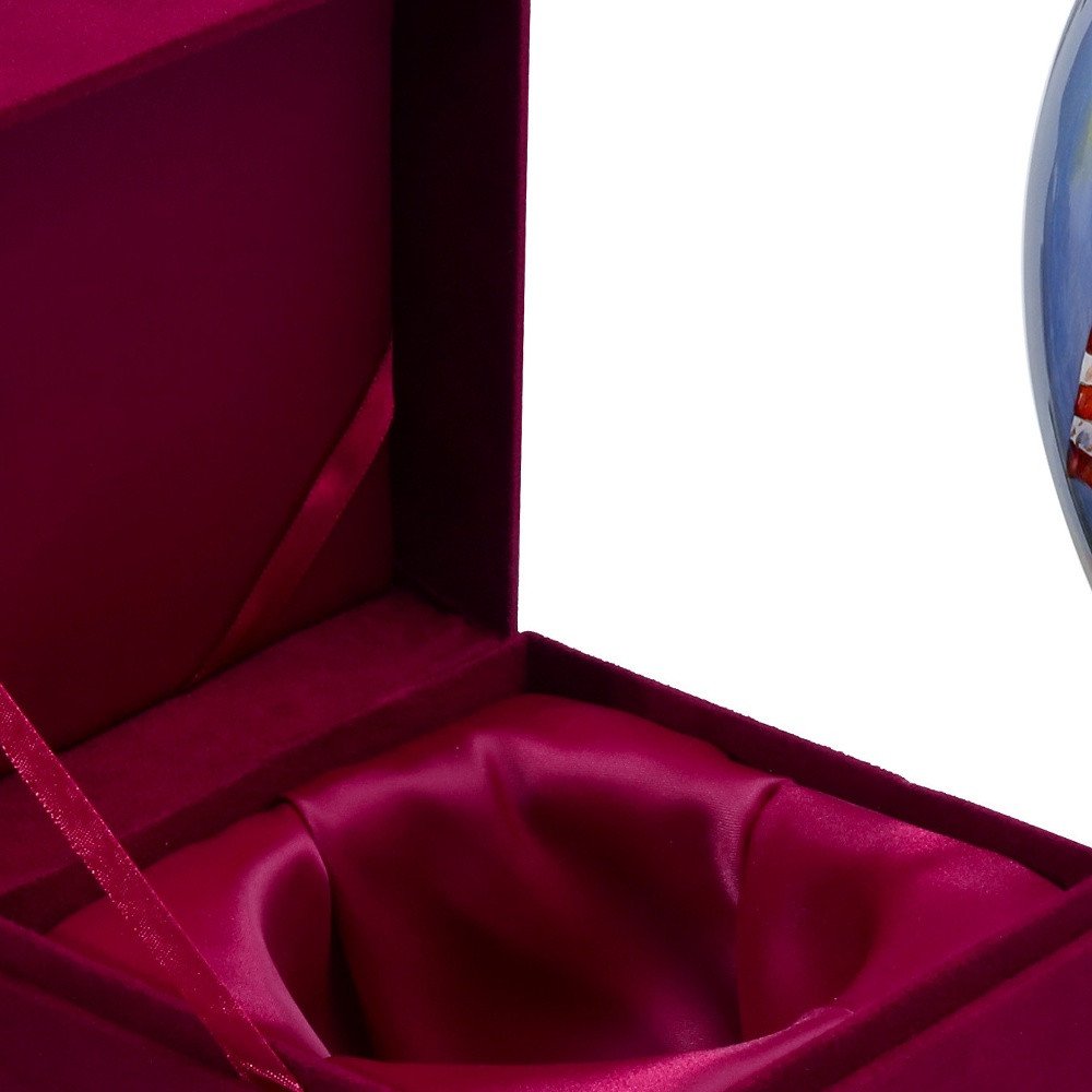 Evoke a sense of Americana and patriotism with this American Flag Angel Hand Painted Mouth Blown Glass Ornament. Using old world intricate techniques, the glass is hand-painted on the inside by skilled artisans. This gorgeous oval teardrop shaped ornament will be a treasured keepsake for your tree but can also be hung easily on an ornament stand. 6" x 3.4" x 3.4".
