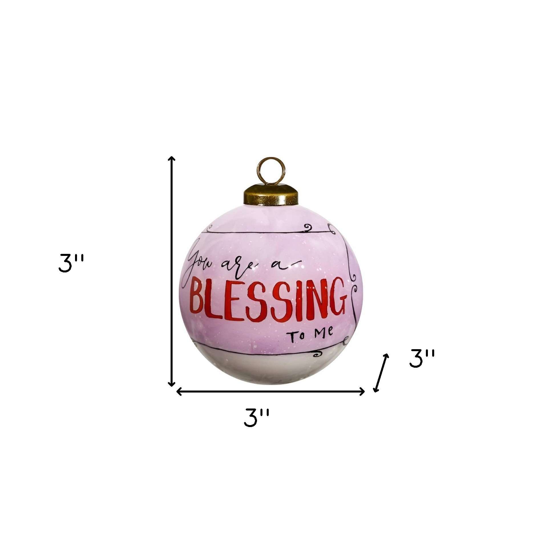 Enliven your dull space with hope and love with the Snowman You Are a Blessing To Me Hand Painted Mouth Blown Glass Ornament. Using old world intricate techniques, the glass is hand-painted on the inside by skilled artisans. This gorgeous round shaped ornament will be a treasured keepsake for your tree but can also be hung easily on an ornament stand. 3" x 3" x 3".