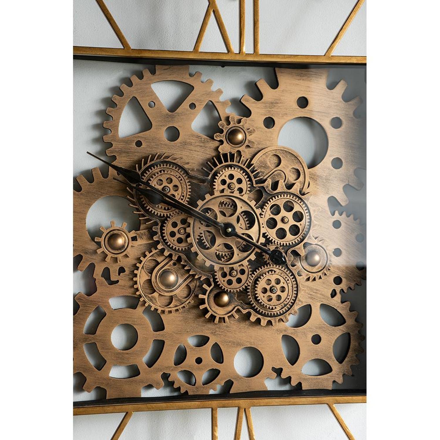 Home > 32" Square Gold Metal and Glass Analog Exposed Gear Wall Clock