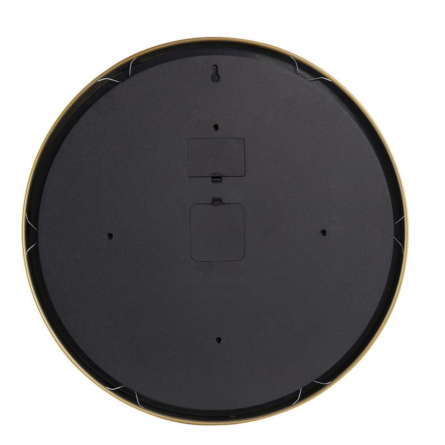 This 18-inch circle gold and white metal and glass analog wall clock includes three moving hands on the face that move smoothly to indicate the hour, minute and seconds. Has a traditional circle shape, which brings an essence of wholeness to your home. The clock face not only looks good but is beautiful and uniquely made from glass. Stay on track with this elegant and efficient clock. With its unique design and practical purpose, this clock will add flair to your home while also acting as an essential tool. 18.1-inch H x 18.1-inch W x 2.8-inch D