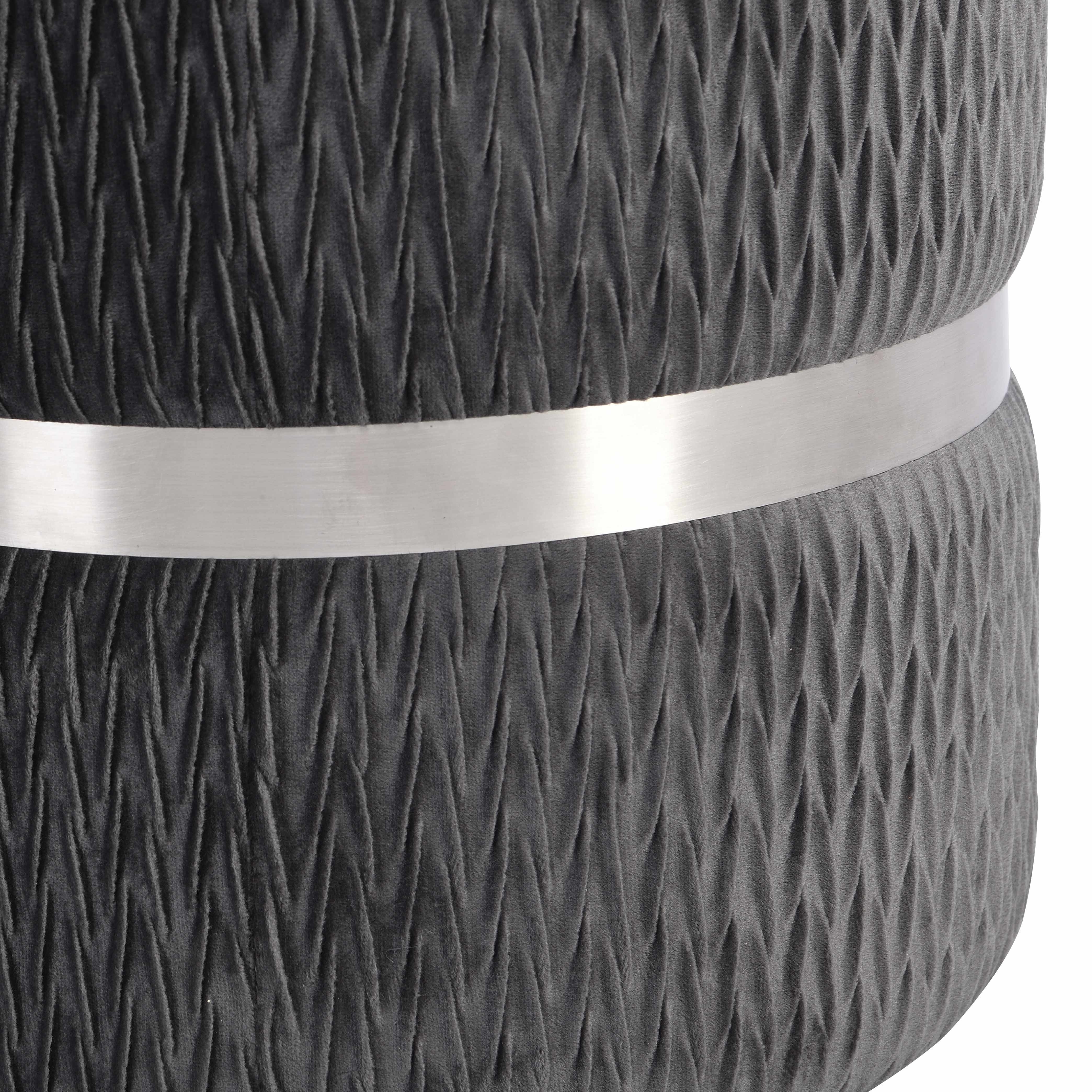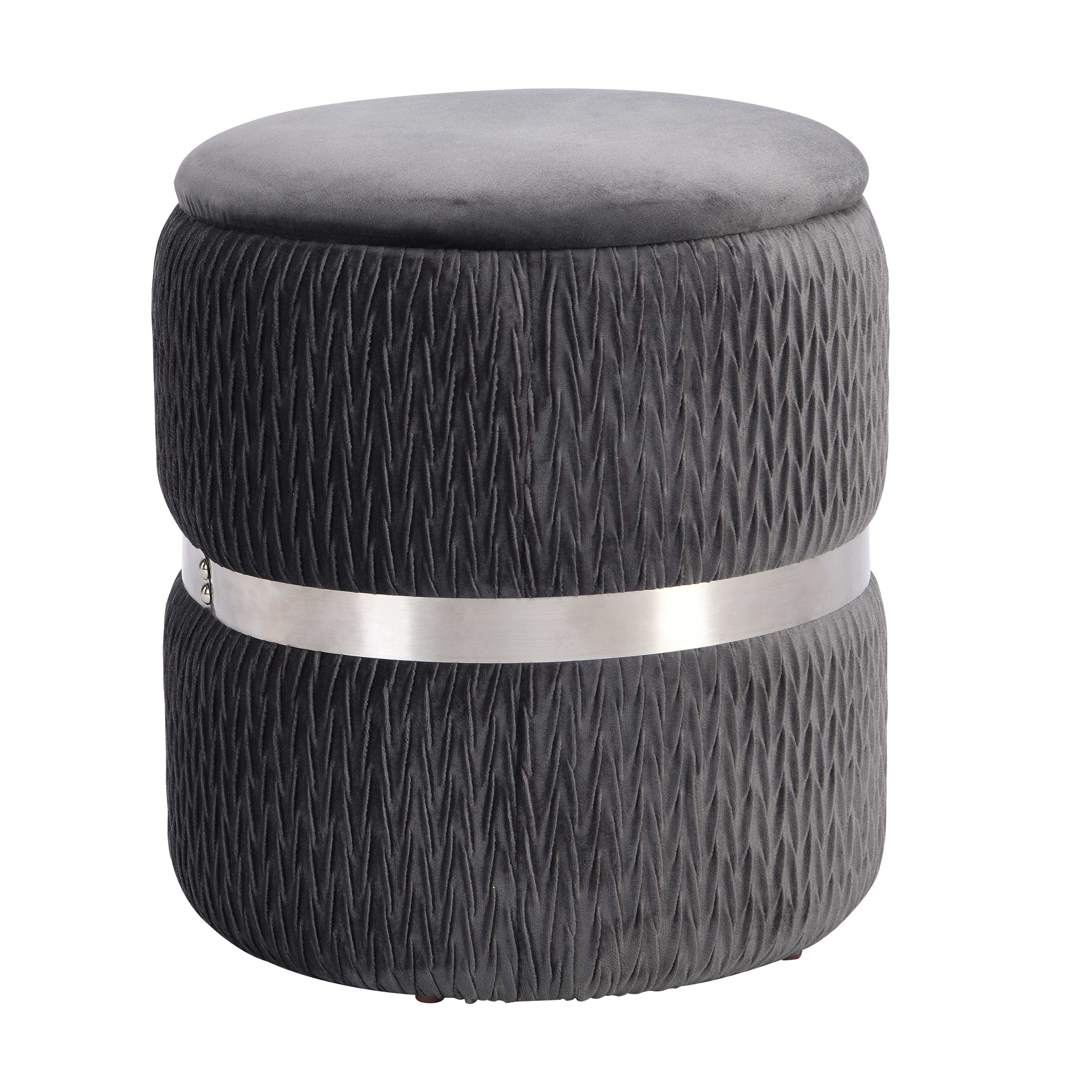 Modern Velvet Round Ottoman with Storage, GreyIntroducing the ultimate solution to your storage and seating needs - the Tufted, Modern Round Velvet Storage Ottoman! This beautifully crafted piece of furniture is stylish and comfortable and provides ample storage space to keep your home organized and clutter-free. With its plush velvet exterior, and sturdy, round base, this tufted ottoman is the perfect addition to any living room, bedroom, or entryway. Whether you use it as a footstool, extra seating, or even as a coffee table, you'll love its comfort and convenience. Weight limit: 250 lbs. Color: Grey and Silver.