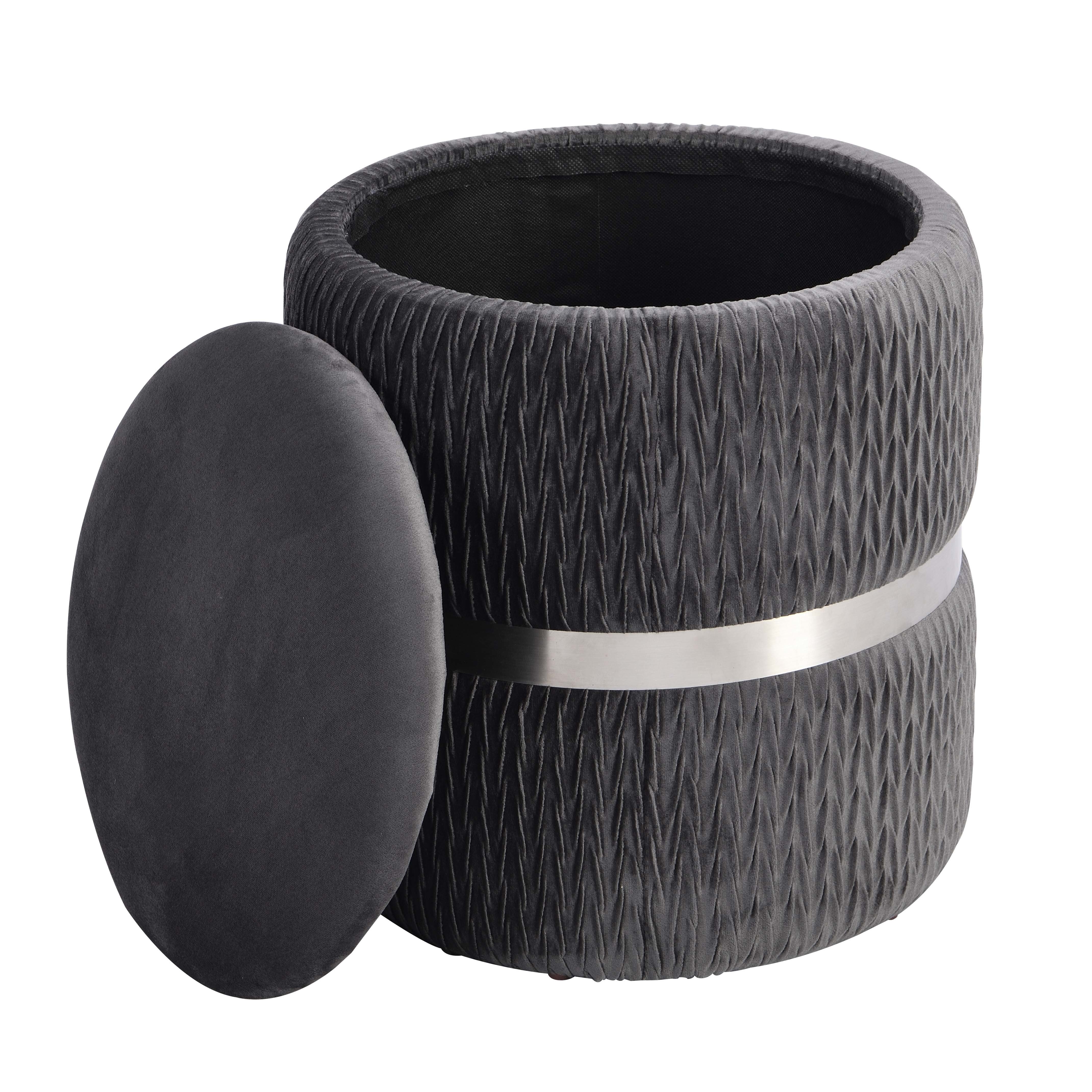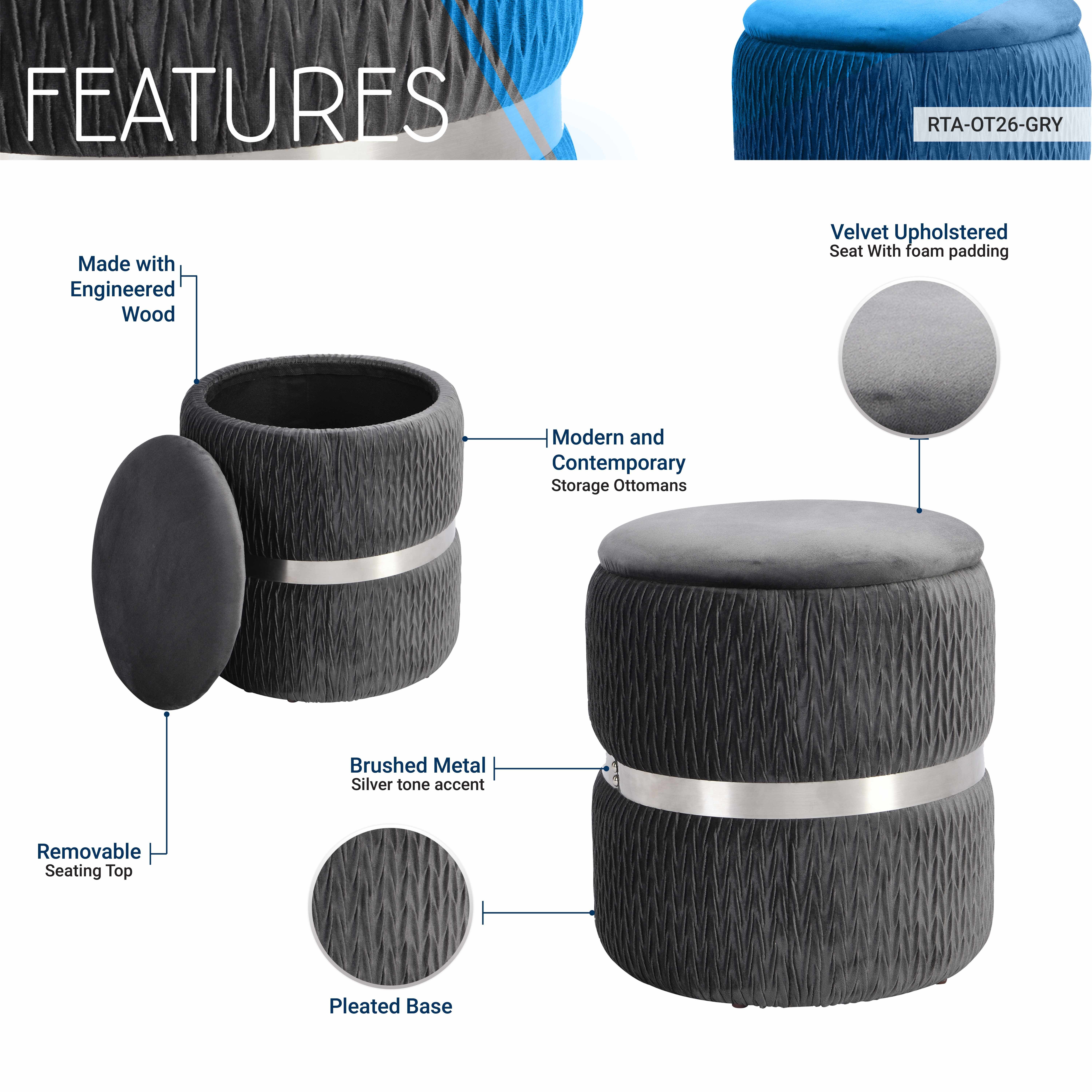 Techni Mobili Modern Velvet Round Ottoman with Storage, Grey - as Pic